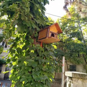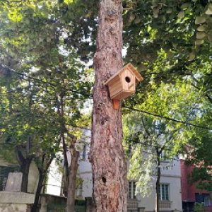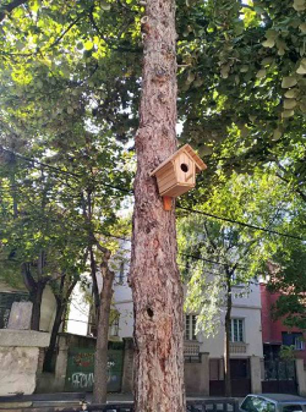 за птице у школском дворишту.Сваке године садимо нове саднице дрвећа у дворишту поред улице Војводе Степе због унапређивања биодиверзитета и заштите од буке и загађења .Желели смо да поставимо кућице пре доласка зиме на посађено дрвеће и заштитимо наше мале становнике школског дворишта.Кућице су направили ученици 4/3 прошле године,а наш домар Љубиша нам је несебично помогао у овој акцији.