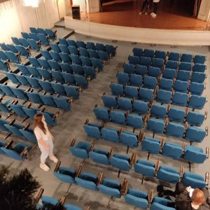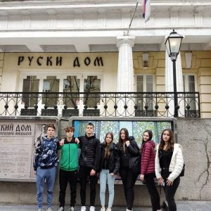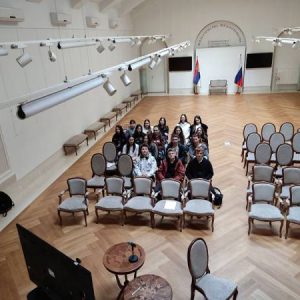 Уз претходни договор са надлежнима у овој установи, била су нам отворена врата простора који је некада био фискултурна сала, затим и балска дворана, склониште током Другог светског рата, а сада је галеријски и простор за разне врсте састанака, окупљања, конференција, прослава. Поред тога, ученици су видели и раскошну концертну салу, у којој наступају српски и руски уметници, али и ученици наших школа на својим традиционалним концертима.