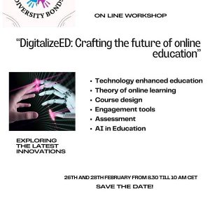 У оквиру актуелног Еразмус+К2 пројекта „Различитост повезује – изазови модерног образовања“, пројектни тим наше школе припрема обуку за све заинтересоване наставнике под називом „DigitalizeED: Crafting the future of online education“, која ће обухватити следеће: